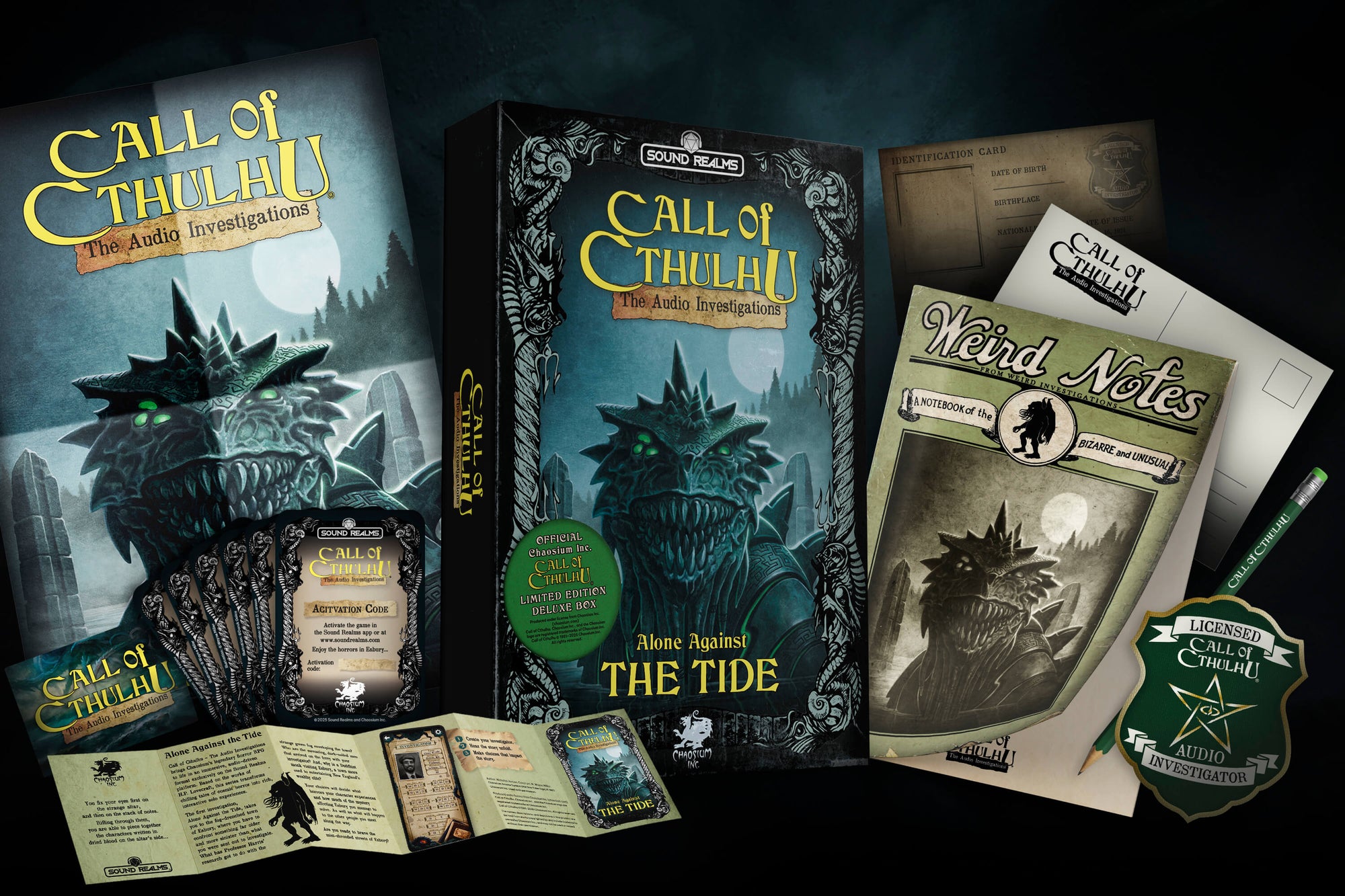 - Activation card to play Call of Cthulhu – Alone Against the Tide on the Sound Realms platform.